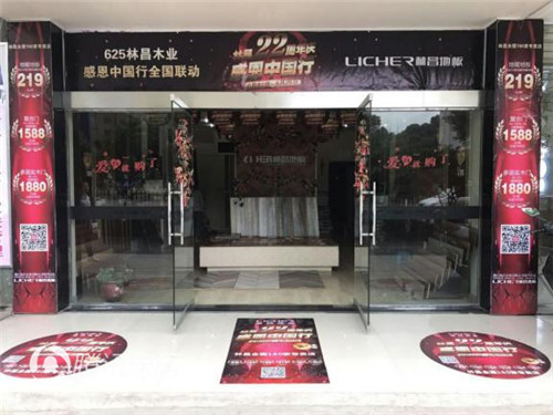 以林昌地板22周年庆感恩中国行为主题的活动不仅是林昌地板的全国联合大促,也是林昌地板成立22周年的一个盛典。为了更好的提升消费者关于6.25林昌感恩中国行活动的参与度,林昌地板还专门为经销商们策划了“体验式消费”的活动,让他们以活动海报为主题进行门店布置,搭配个性、实用的地面铺装效果,将现场将活动气氛渲染的更加热烈,吸引消费者前来选购。