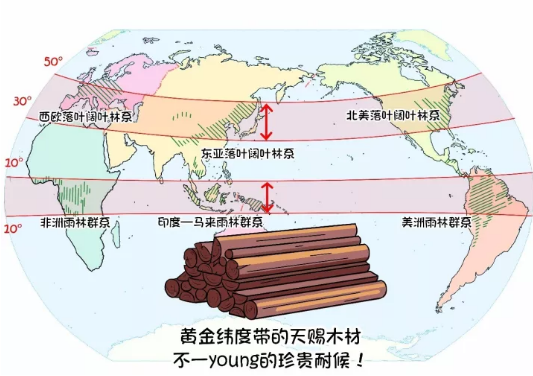 林昌地板的原料进口均自东南亚热泪地区的珍贵木材,北纬10°至南纬10°之间的黄金维度带孕育出了地球上最优质的木材,被誉为“天赐木材”,而林昌正是用这样的正规原材,为你打造不一young的强大耐候性能!