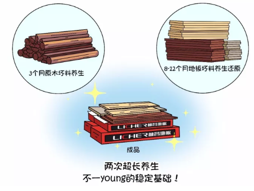 木材都是有生命力的,它会呼吸,会收缩膨胀,地板胚料买来后,都要经过一段时间的养生才能让它适应当地的湿度。而林昌地板的原料则拥有两次超长的养生,一次3个月的原木胚料养生以及一次8—12个月的地板胚料养生还原。通过这两次养生,林昌地板建立起了不一young的稳定基础!